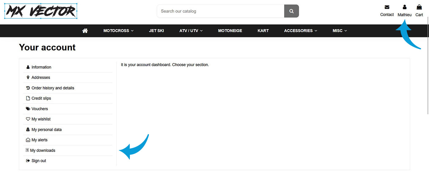 Follow the blue arrows to find how to download your MX-Vector graphic template :